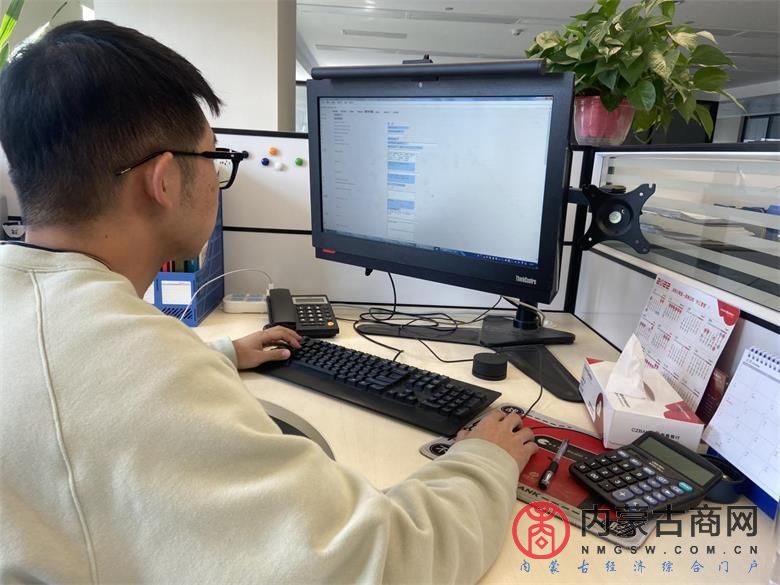 图为浙商银行呼和浩特分行国际业务产品经理住行为企业提供线上服务